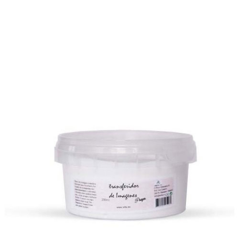 El transferidor de imágenes es un producto acrílico usado para transferir imágenes de papel, hacía cualquier tipo de superficie. Lienzo, madera, cerámica, metal, tela, vidrio, etc. Es imprescindible, que la tinta de la impresión sea tipo láser.