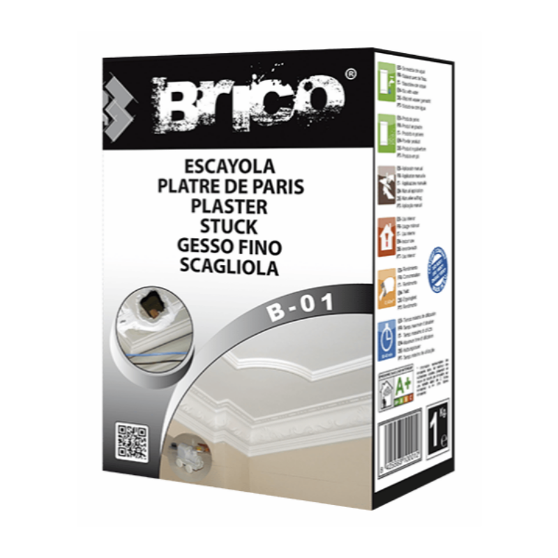 Escayola indicada para manualidades, moldeo de figuras, reparación de yesos decorativos y falsos techos, fijación de molduras de escayola y relleno de agujeros